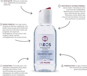 Désinfectant pour les Mains – Formule Hospitalière, Efficace contre 99,9% des Virus et des Bactéries